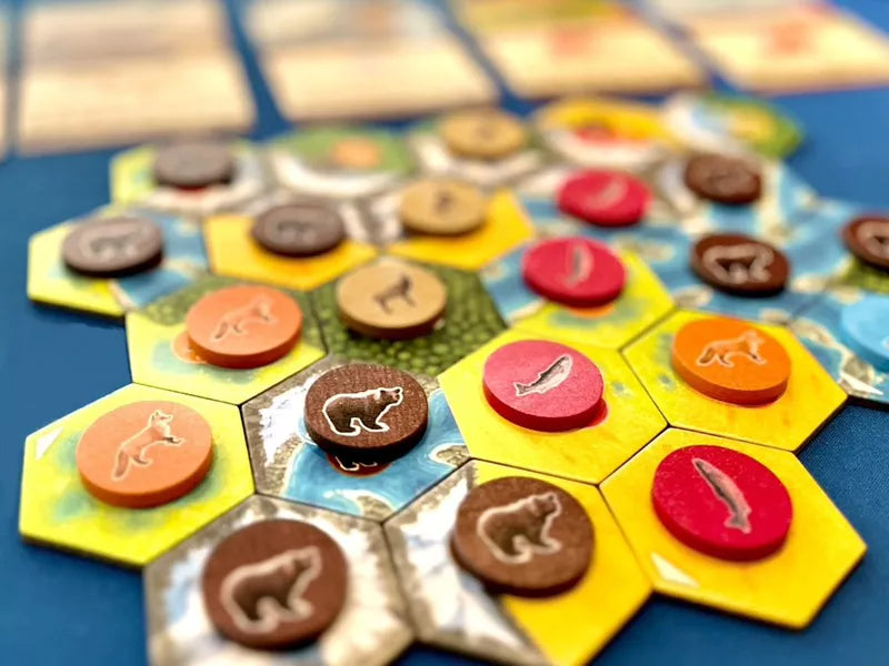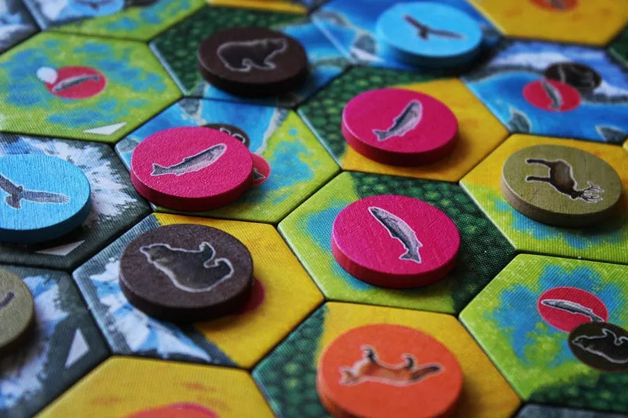 On your turn, you choose a habitat tile with an associated animal token and add it to your personal landscape. You place the tile adjacent to your existing area and place the animal on a suitable habitat. At the end of the game, you score points for large, contiguous habitats and for animals, each with its own unique scoring requirements. Nature tokens provide additional flexibility by allowing you to decouple choices when the supply isn't favorable.