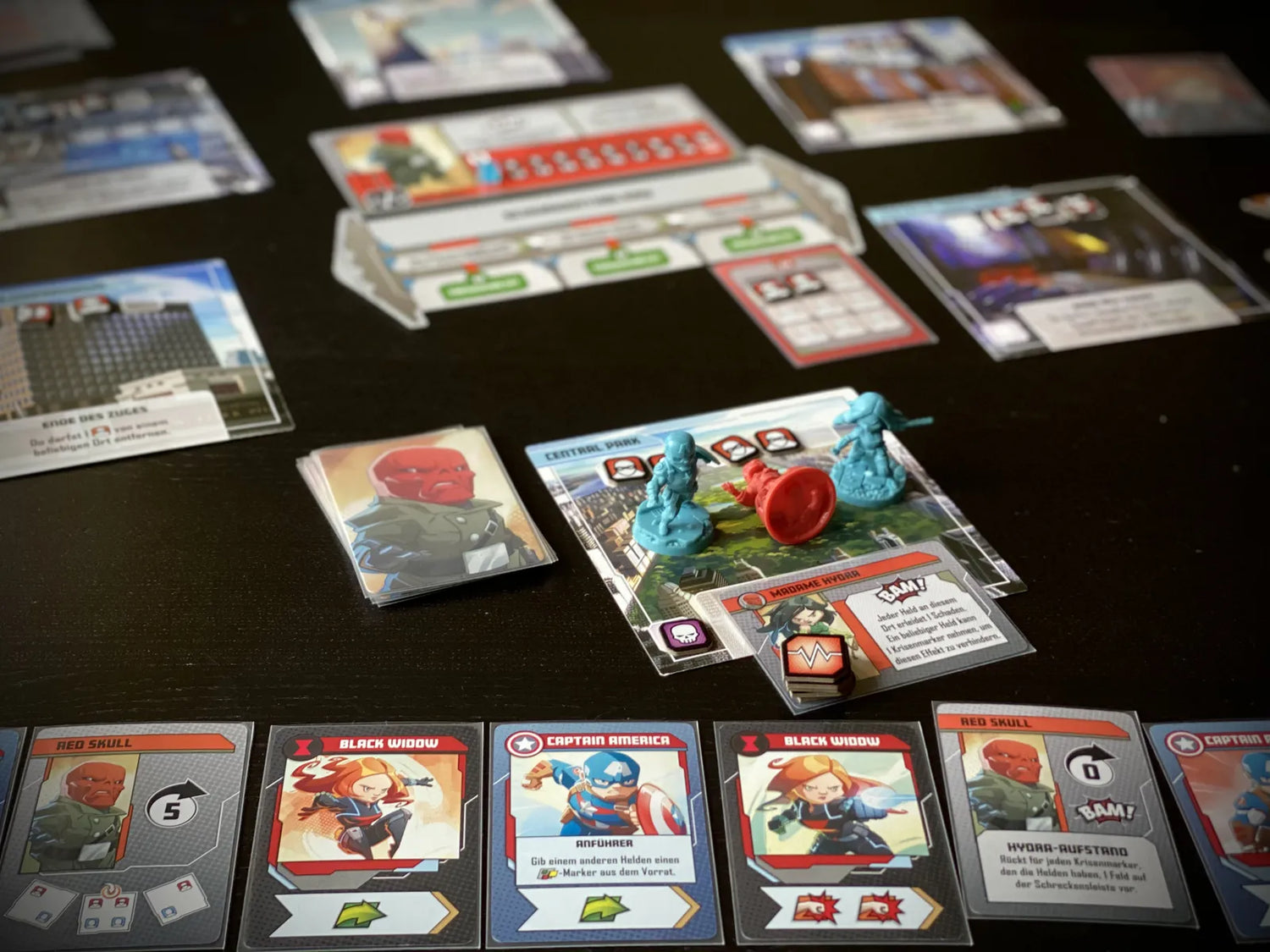 In Marvel United kruip je in de huid van iconische helden zoals Iron Man, Captain America of Captain Marvel. Samen proberen jullie een schurk — bijvoorbeeld Red Skull of Ultron — te stoppen die de stad onveilig maakt. Elke schurk heeft een eigen spelbord en uniek masterplan, waardoor elk spel een ander verhaal vertelt. Het spel bouwt letterlijk een verhaallijn op terwijl de kaarten één voor één worden gespeeld.