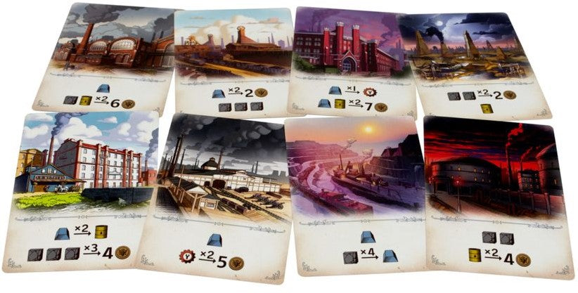 Het spel bestaat uit vier rondes waarin spelers bieden op nieuwe fabriekskaarten met schijven van waarde 1–4. Je mag nooit dezelfde waarde bieden als een andere speler op dezelfde kaart, en je mag niet twee keer op dezelfde kaart bieden. De winnaar krijgt de kaart, terwijl de verliezers compenserende grondstoffen ontvangen, wat soms zelfs waardevoller is dan winnen. Daarna bouwt iedereen zijn kaarten in volgorde en activeert hij zijn volledige productieketen, waarbij elke keuze invloed heeft op de volgende. Na vier rondes wint de speler met het meeste geld.
