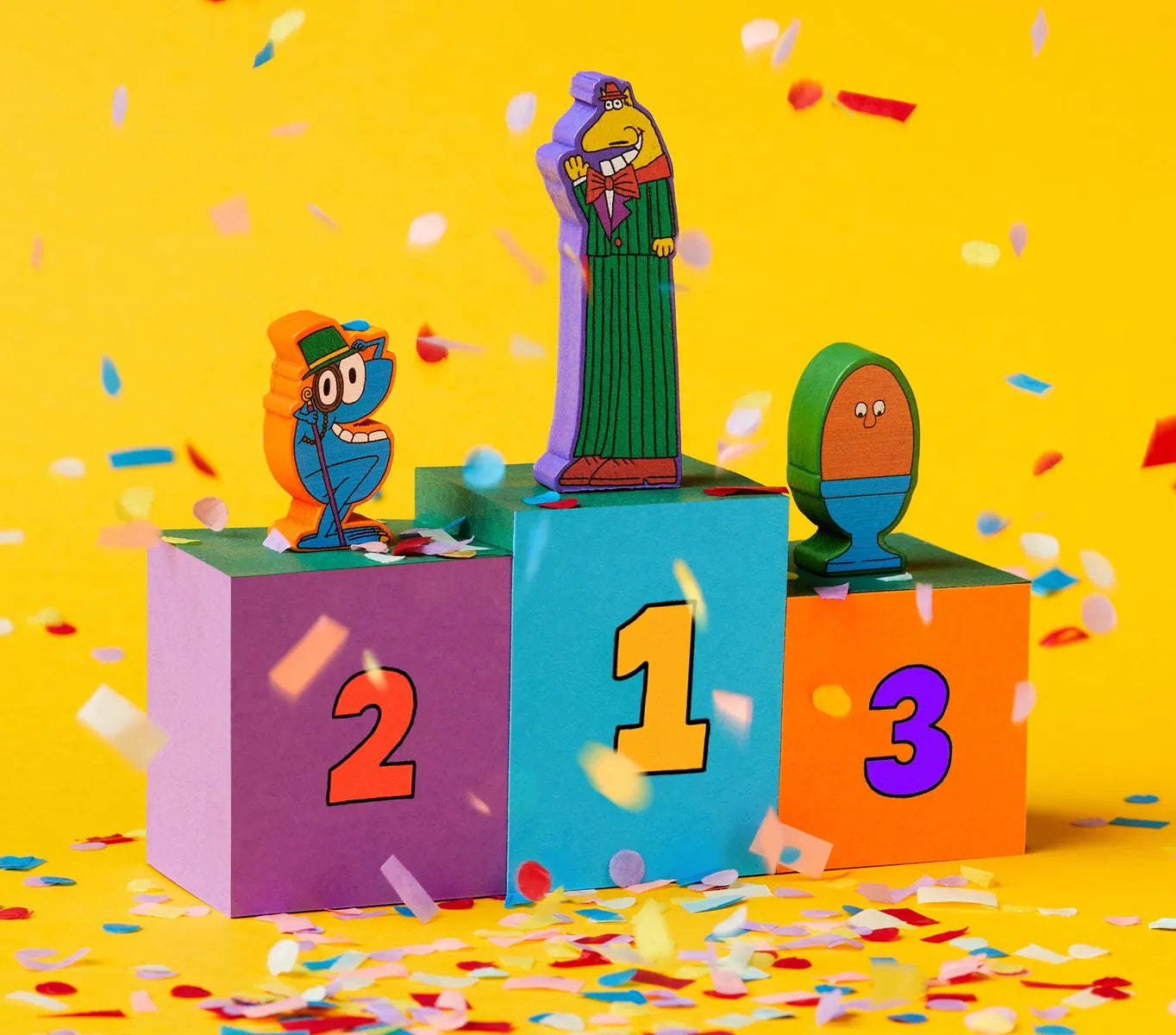 Ergens op de baan van het Mild Mile staat een merkwaardig gezelschap aan de startlijn klaar. Er is de reusachtige baby die een heel vakje in beslag neemt, de centaur die iedereen die hij passeert twee vakjes terugschopt, Sisyphus die bij elke zes zijn steen laat vallen en helemaal opnieuw moet beginnen, en de Lovable Loser die punten verdient zolang hij als laatste loopt. Magical Athlete is een Japapns racespel uit 2003 dat uitgroeide tot een cultklassieker — en dat in 2025 een prachtige heruitgave kreeg met bijgewerkt ontwerp door Richard Garfield (de man achter Magic: The Gathering) en nieuwe karakters en kunstwerk. Het spel belooft chaos en houdt die belofte feilloos.