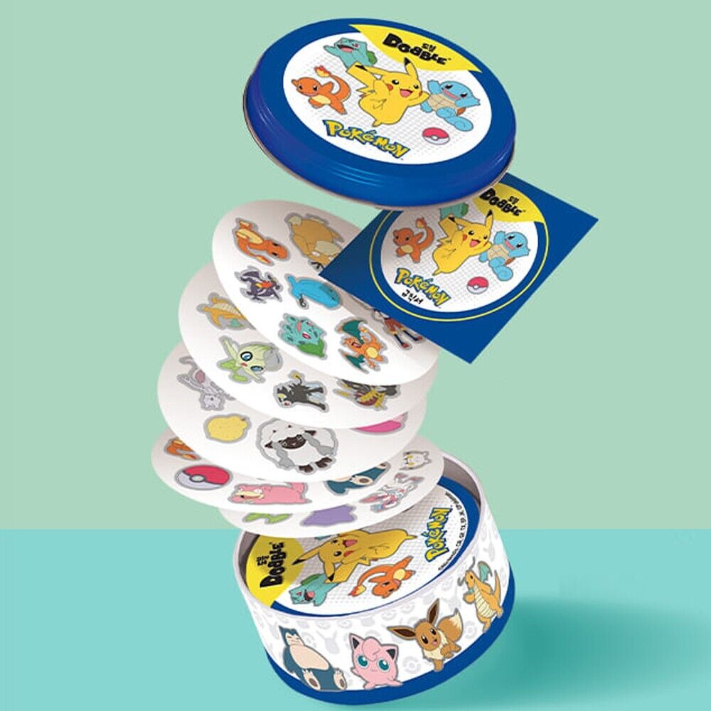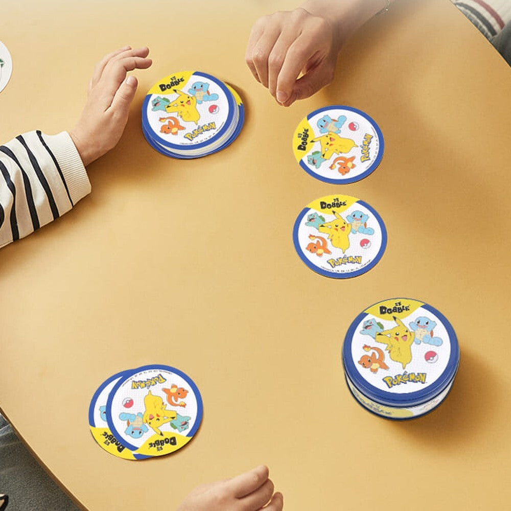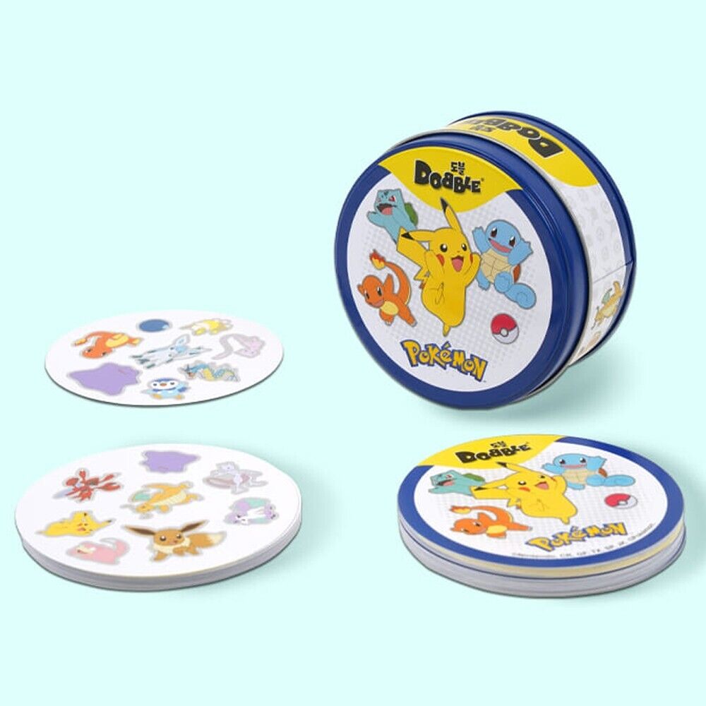 Pokémon Dobble is een razendsnel observatiespel waarin spelers zo snel mogelijk de ene Pokémon zoeken die twee kaarten altijd met elkaar gemeen hebben. Elke ronde verschijnen nieuwe kaarten met bekende Pokémon in verschillende groottes, waardoor je ogen voortdurend over het kaartje flitsen om die ene match te vinden.